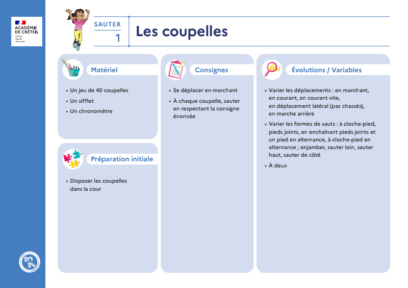 Cette ressource rassemble 15 fiches autour de la famille d'action : sauter.